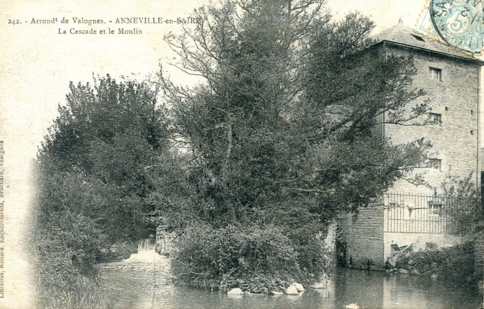 La voie romaine qui reliait Barfleur à Valognes passait à Anneville où elle franchissait la Saire. Là, il y avait un gué, doublé d’un pont de maçonnerie à plusieurs arches qui doit remonter, même s’il a été remanié ou consolidé ultérieurement, à l’époque gallo-romaine. Autrefois se tenaient 2 foires à Anneville : la foire St-Léger et la foire de la St-Gilles au Tourps. Les jours de foire, ceux qui voulaient franchir la Saire devaient acquitter un droit de passage.