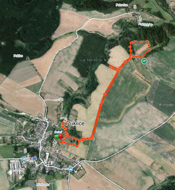Trasa závodu vede severně od obce Puklice převážně po polní cestě a loukách. Start i cíl jsou na louce pod puklickým hřbitovem.