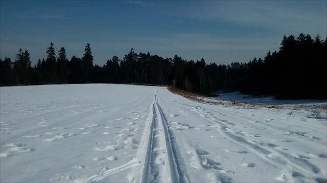 PUKLICKÁ STOPA je název místního amatérského závodu na běžkách.