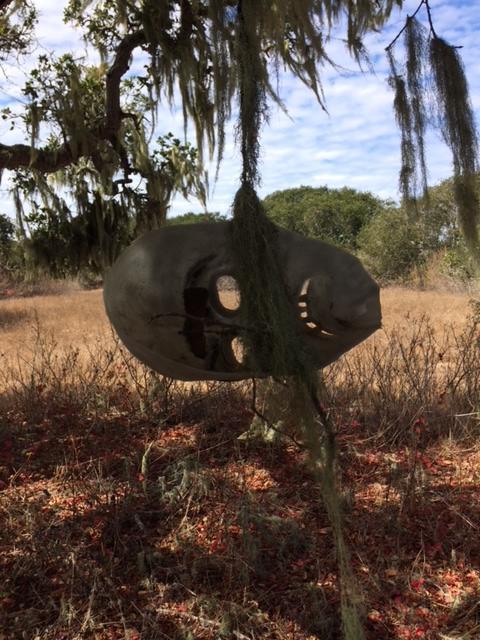 Flash forward to today... The oldest of the Girls has returned. Hiking out to check on the cache, she was confused by the changes she found in the area: new stands of poison oak, thistle fields, dead trees, shattered limbs, missing orbs, and, alone of all the spooky landmarks, only The Mask of Death survived.