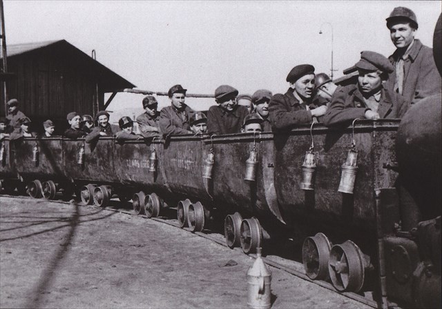 Fáranie do podzemia v handlovských baniach okolo roku 1950.