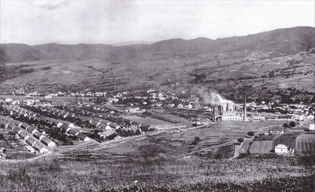 Banícka kolónia, dobová pohľadnica, okolo roku 1924, v strede futbalové ihrisko.