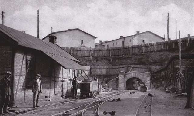 Nádvorie pred ústím Hlavnej štôlne pred rekonštrukciou v roku 1927.