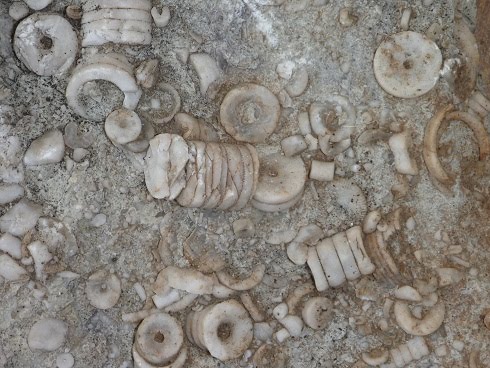 Clams, oysters and mussels are all examples of bivalves. The fossils here tend to be either bits of shells or whole shells.