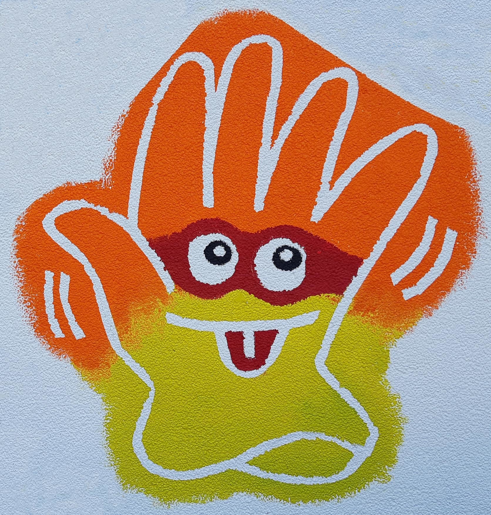 Fresques réalisées en Juin-Juillet 2016 par des parents et des enfants sous la direction de Chara-Rimpa (Cho Kuwakado le directeur de Lumbini Kindergarten à Saiki City au Japon, et l’éducateur artistique Dr. Yasuyuki Sakura en sont les deux concepteurs).