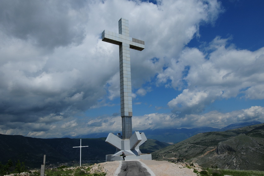 Da lassù si domina la stretta valle di Mostar. Hanno alzato una grande croce sulla vetta. E’ alta trenta metri. E’ fosforescente: si illumina di neon non appena tramonta il sole.