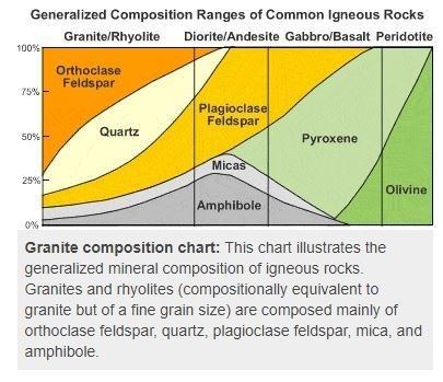 Granite is a light-colored igneous rock with grains large enough to be visible with the unaided eye. It forms from the slow crystallization of magma below Earth's surface. Granite is composed mainly of quartz and feldspar with minor amounts of mica, amphiboles, and other minerals. This mineral composition usually gives granite a red, pink, gray, or white color with dark mineral grains visible throughout the rock.