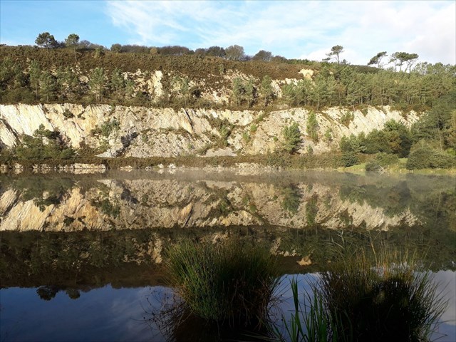 L’histoire de ce site est lié à l’implantation industrielle de l’usine de retraitement Cogema. Des géologues ont exhumé au début des années 80 des grès de l’âge cambrien pouvant servir à la production de béton. Créée en 1982, la carrière d’extraction a cessé son exploitation 7 ans plus tard, léguant au paysage un front de taille de 450 mètres de long, un à pic de 40 mètres, sur 9 hectares, et un étang artificiel de 3 hectares dans le trou de la carrière, d’une profondeur moyenne de 18 mètres.