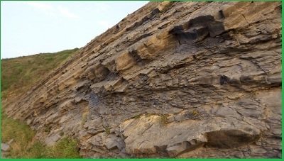 Observa a tu alrededor y puedes ver muchas zonas donde los pliegues en la rocas, llamados SLUMP, están fracturados ¿Que fuerza de la naturaleza crees que ha provocado esas fracturas?