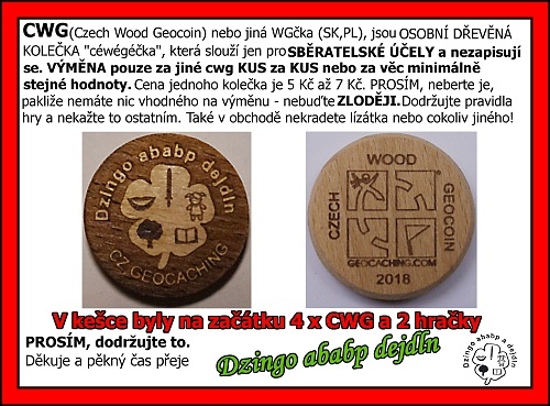 Kdo by je neznal. Srdce potěší, když kačer nějaké to dřívko v kešce objeví. Ne všechny, leč celkem dosti kačerů rozradostní. Ve všech keškách co jsme založili a céwégéčka tam na výměnu nechali, se nestalo, aby tam po dvou měsících nějaké to dřívko zůstalo! A to prosím máme keše i pouze pro prémiové členy. Do některých jsme dali i tuto info tabulku: