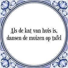 Als de kat van huis is, dansen de muizen op tafel is een spreekwoord dat 'zonder toezicht doet men waar ze zin in heeft' betekent.
