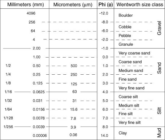 Grain size means the diameter of individual grains of sediment. It can be categorised using the Wentworth Size Class