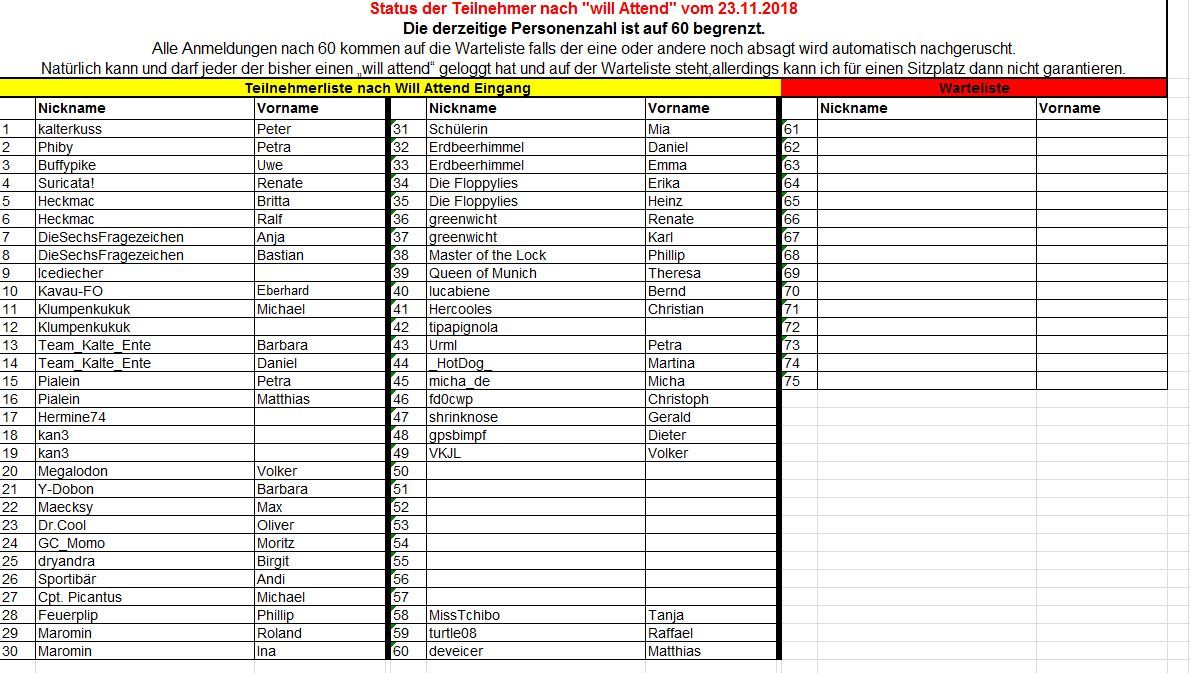 Es wäre daher super wenn ihr bei Eurem "will attend" ebenfalls euren Vornamen mit angeben würdet.