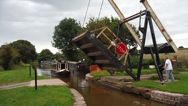 Whitchurch, Shropshire, England: Hand-cranked lift bridge to allow boats to go through.