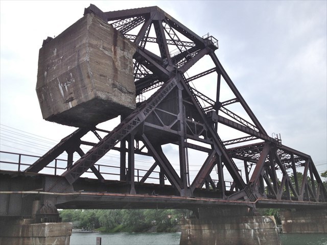 Tonawanda, NY: Railroad bridge was built as a lift bridge; the lifting portion was tested but never used.