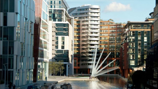 Two cool pedestrian bridges are found at Merchant Square in Paddington, England: the Rolling Bridge and the Fan Bridge.