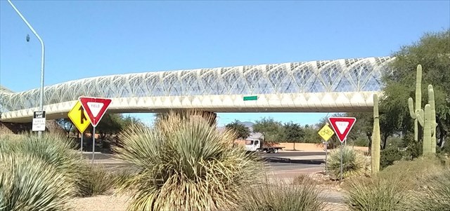 The Rattlesnake Bridge is one I've actually been to...because of a virtual cache placed for it (That Bites! GC8659). The walkway goes over Broadway Blvd. and is 280 feet long. It was built in 2002, which also happens to be the year the virtual was published.