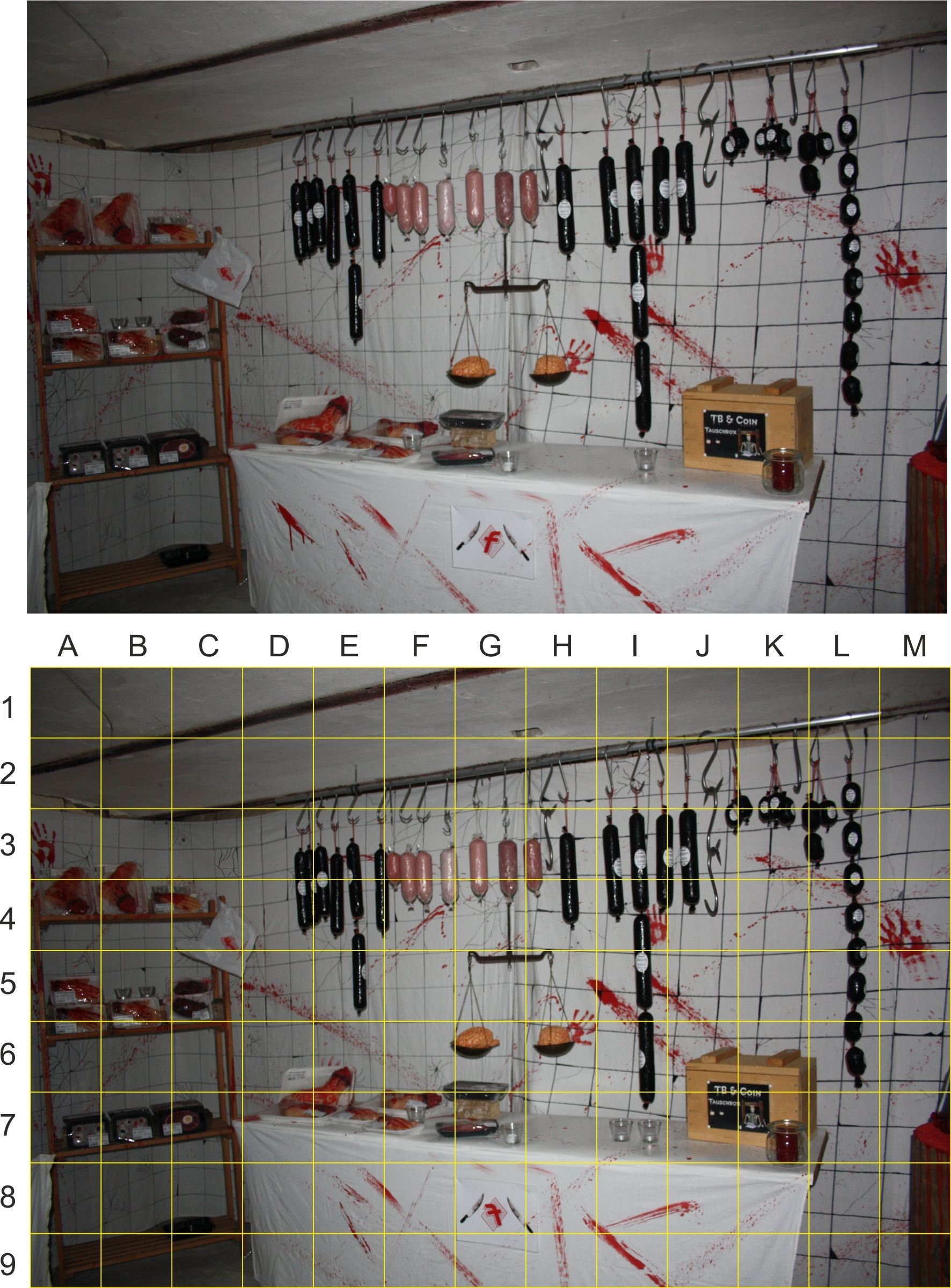 Zum Glück hatten wir noch das Originalbild und konnten 6 Fehler finden. Schaut euch die beiden Bilder genau an und findet die 6 Fehler. Die Fehler ergeben Buchstaben Zahlen Kombinationen. Wenn ein Fehler in mehreren Feldern liegt, müssen die Zahlen addiert werden. Sortiert die Buchstaben Zahlen Kombinationen nach dem Alphabet. Mit den ersten drei Zahlen erhaltet ihr den Wert für die Nordkoordinate (X) und mit den letzten drei Zahlen den Wert für die Ostkoordinate (Y).