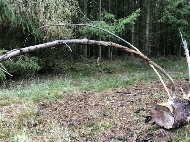 Den lille Kratlusker havde lyst til at komme ud og røre sig oven på alle Omas pandekager, så han fik pumpet mountainbiken og ræsede rundt i skoven.