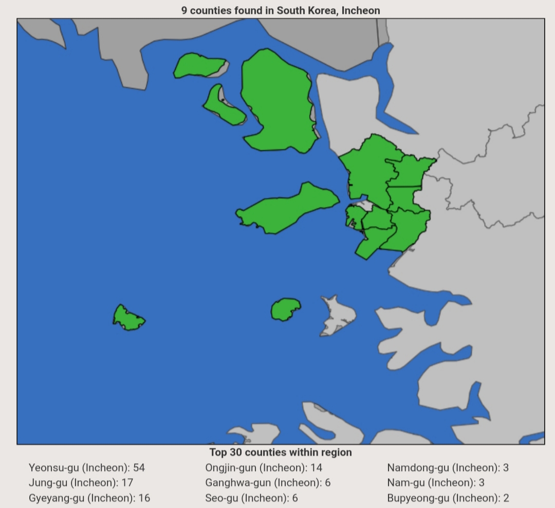 This Geocache is at posted coordinates, but you must qualify for the challenge to log the find. This is a challenge to have found at least one cache of any type in every area in Incheon. There are 9 gu or gun in Incheon and each one has its own little difference. I hope that you enjoy wandering around Incheon as much as I have. You may sign in to this challenge before you qualify, and then log a find when you do. You can verify that you qualify for this challenge by running the checker posted below.