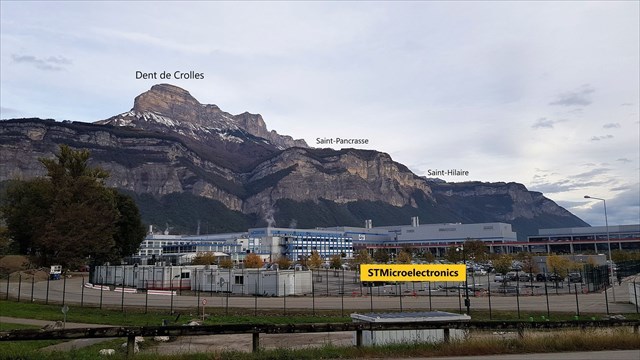 De la piste cyclable, vous pouvez observer le site STMicroelectronics de Crolles. Cette entreprise développe, fabrique et commercialise des puces électroniques (semi-conducteurs). Elle est l'un des tout premiers acteurs mondiaux du secteur économique de la production de semi-conducteurs (source : Wikipédia).