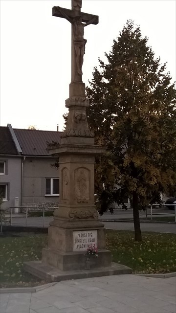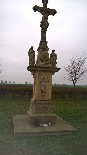 Druhá socha stojí napravo od kaple. Počet dlouhých ý v nápisu na přední straně je číslem E.