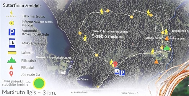 Keliaudami kalvotais Skrebio miško keliukais, pasigrožėsite liepiniu skroblynu, senoliais ąžuolais, jotvingių laikus menančiais Mošos piliakalniu ir pilkapiais, šaltiniuotu Mošos upeliu. Takas atidarytas 2018 spalio mėn. Maršruto ilgis - 3km. Trasą galima įveikti ir kalnų dviračiu, tačiau jūsų laukia daug įkalnių ir nuokalnių.