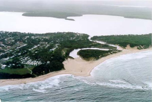 The condition of the lake’s entrance is controlled by tides, waves, currents, sediment movement, creek flows, floods and human intervention. The interaction and ever changing nature of these factors may cause the entrance to migrate along the coastline, to close up, re-open, etc.