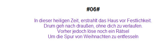 Hier ist nun Schluss. Der Cacheadventskalender 2018 wird nun geschlossen. Daher ist " Auf der Suche nach Weihnachten #06#" nun nicht mehr findbar, denn der Cachebehälter wurde entfernt.