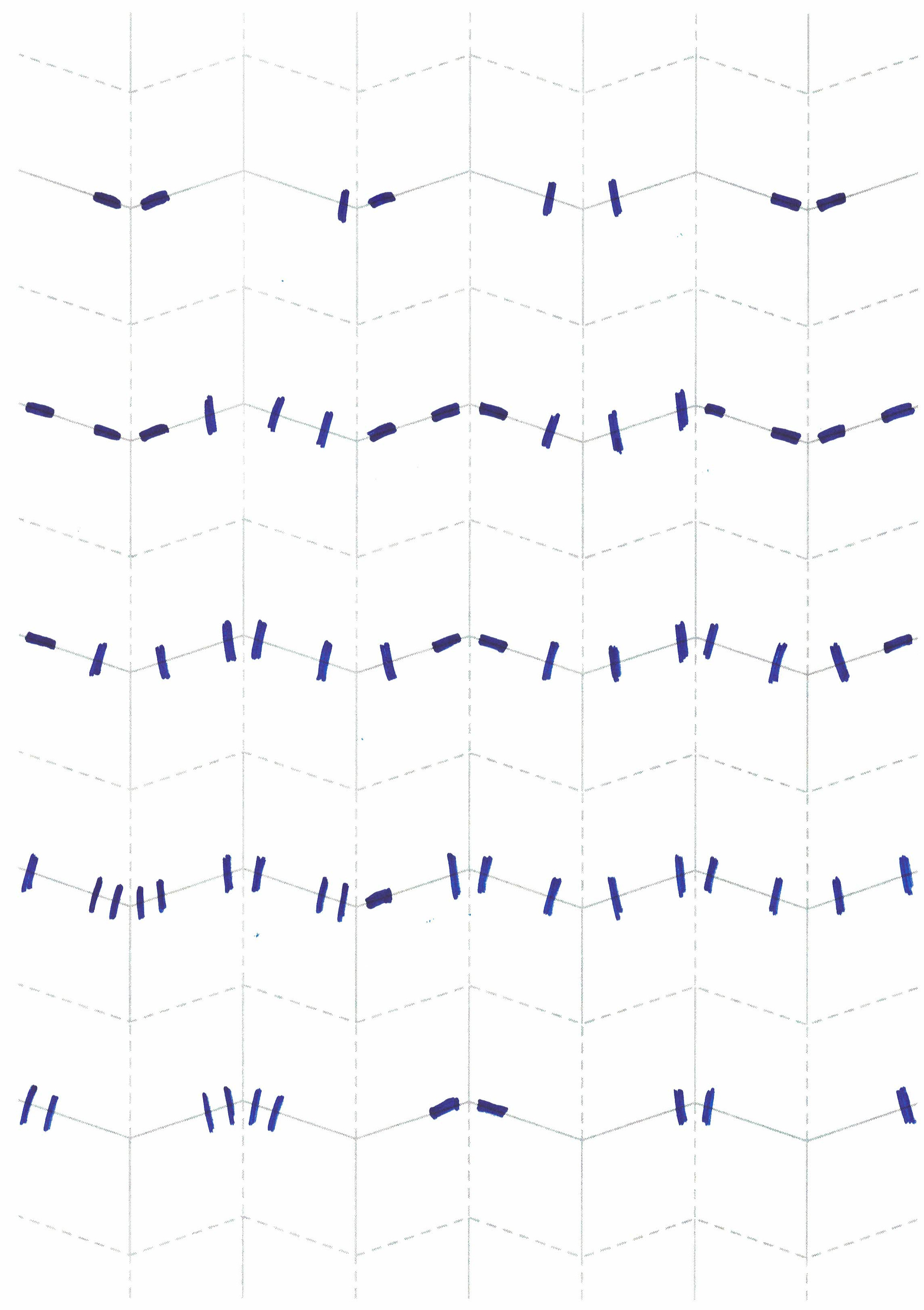 Als nächstes faltet ihr das Blatt entlang der durchgehenden Längsgeraden ziehharmonikaförmig.