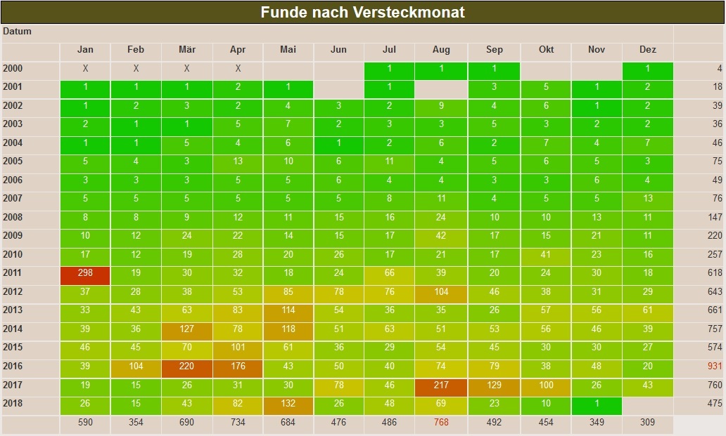 To log this challenge you need at least three caches from all 12 months of 2006 – where and when doesn't matter! As the owner I of course fulfill the requirements – here is my actual matrix of finds by hidden months found at the time of the publish: