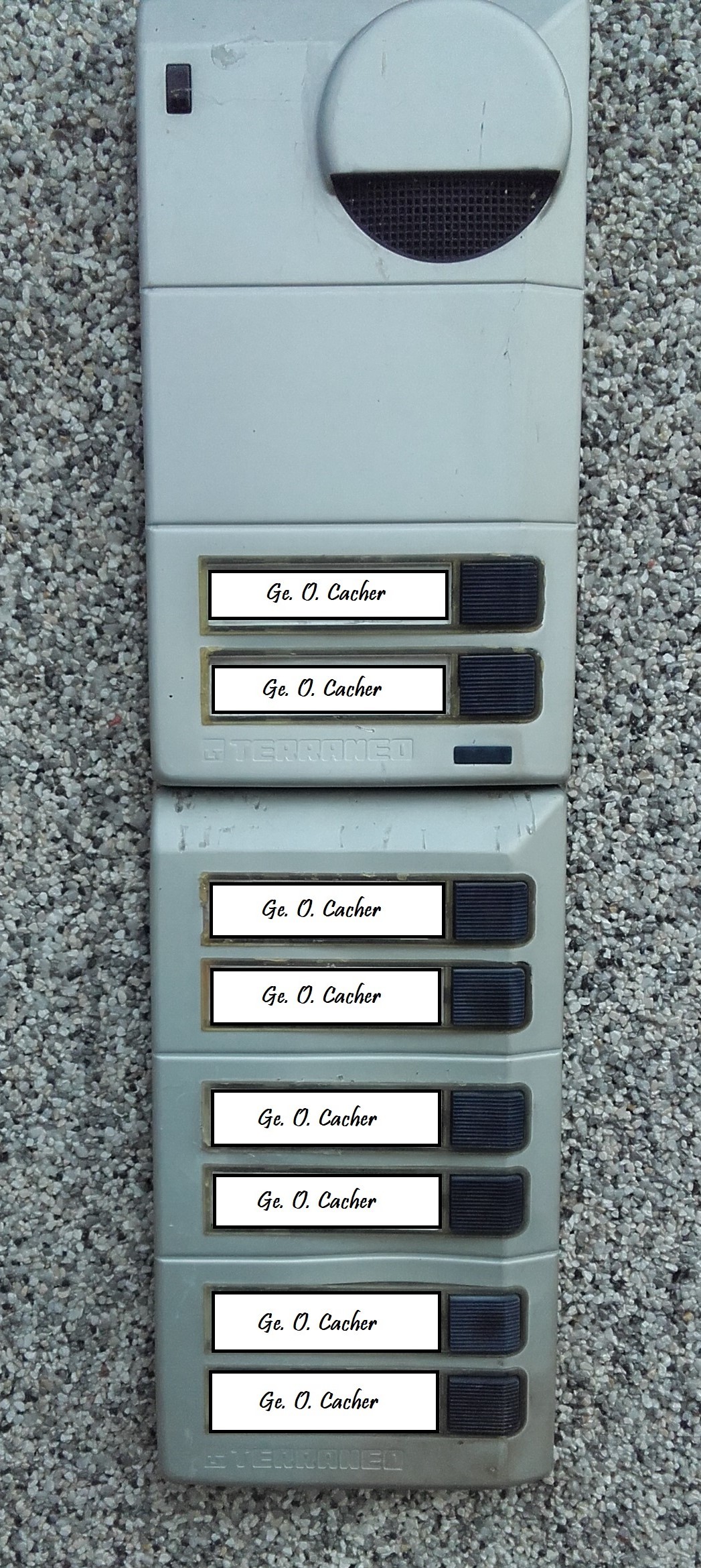 Die Koordinaten sind nicht ganz willkürlich gewählt, führen aber nicht direkt zur Behausung. Geht die Straße ca. 190 m in Richtung SSW entlang und sucht die oben genannten Namen. Dazu muss kein Haus betreten werden. Alle Namen stehen außen an den Klingelschildern. Anhand der Hausnummer und Position auf der Klingel ergeben sich aus der nachfolgenden Matrix Zahlen.