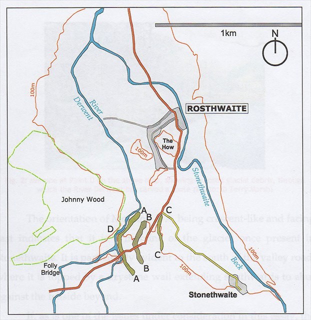 A study of the situation around Rosthwaite shows evidence of a number of these features, including the likely existence of pro-glacial lakes.