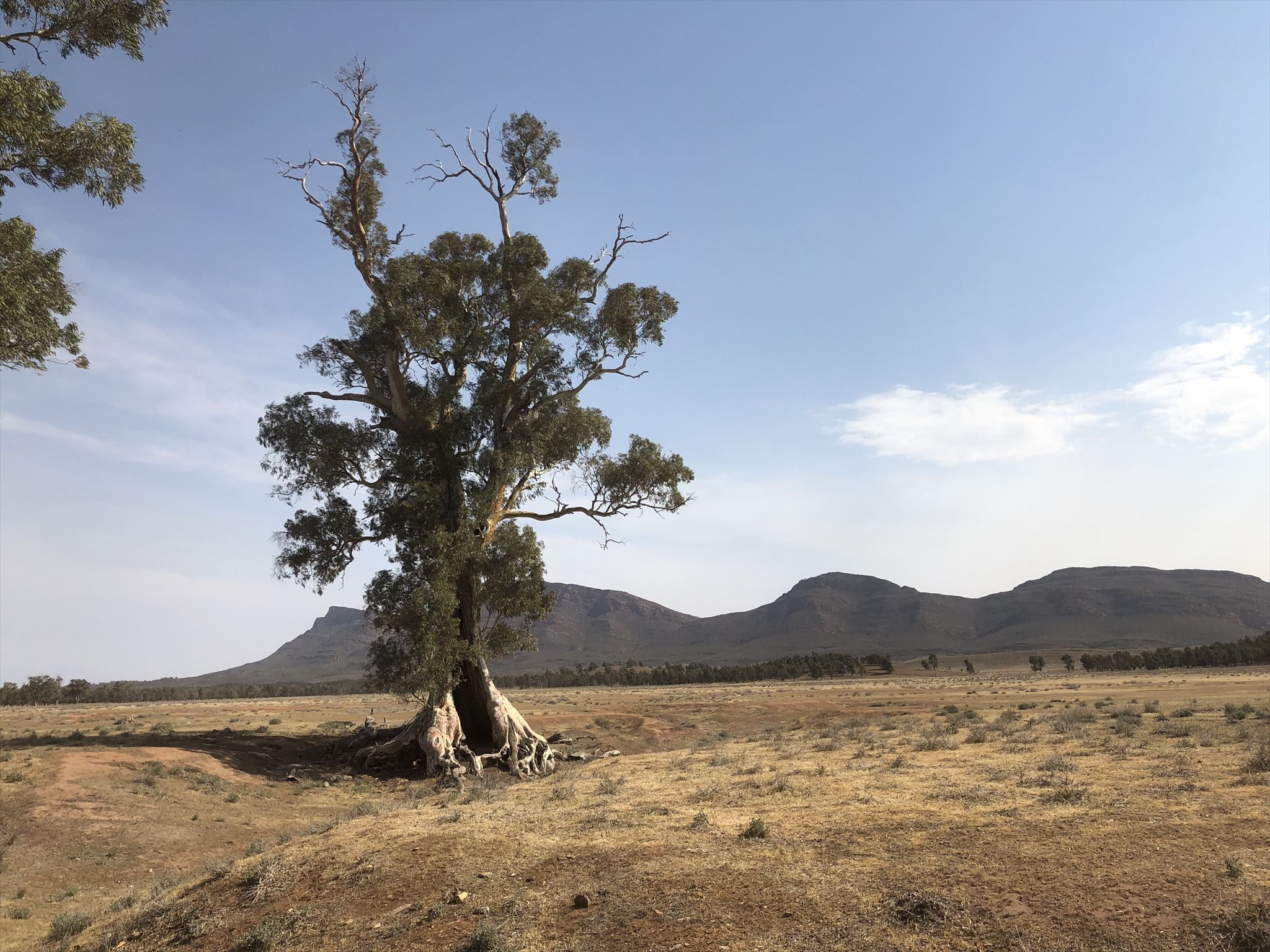 The Cazneaux Tree, also known as Cazneaux's Tree, is a Eucalyptus camaldulensis or river red gum that was made famous by the photographer Harold Cazneaux. It is located near Wilpena Pound in the Flinders Ranges of South Australia. Although the tree is located within the bounds of a pastoral lease, it is accessible all year round. The tree was listed with the National Trust because of its outstanding aesthetic beauty as significant tree #239 on the Trust's Register of Significant Trees.