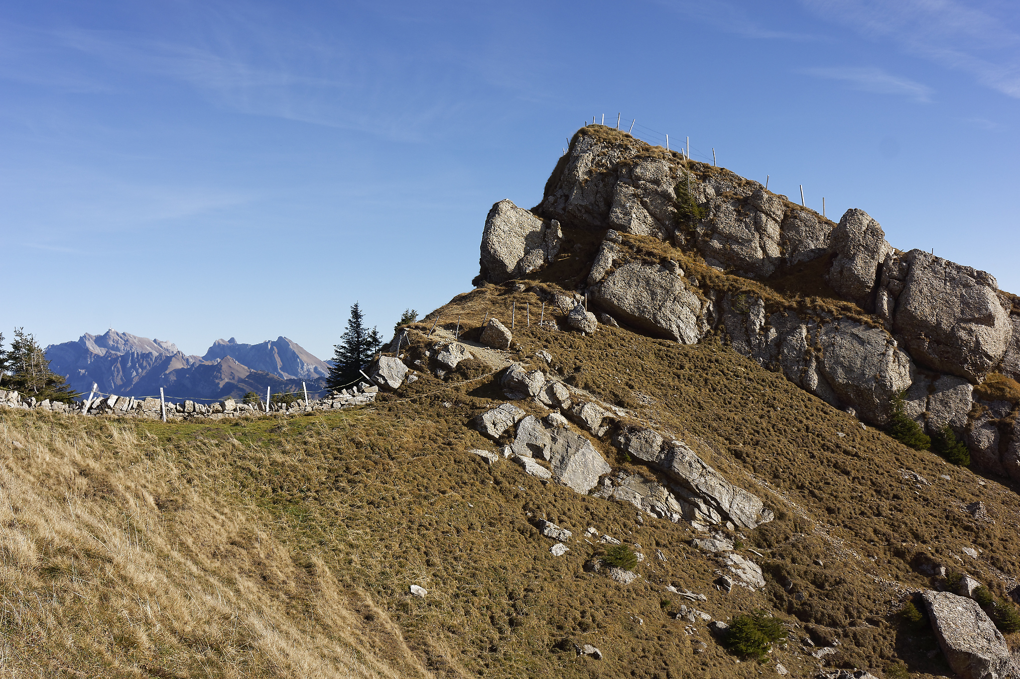 Folge dem Wanderweg weiter bis zum Ref 2. Ab hier führt ein Weg rechts hoch bis zum Gipfel des Speermürlis.