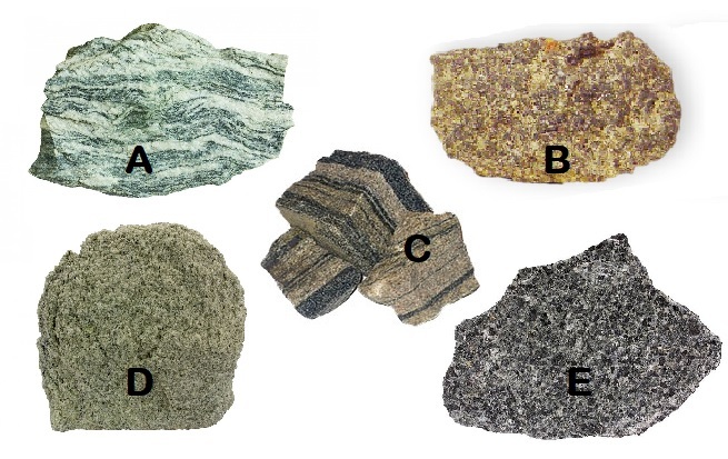C. Which of the given options: A, B, C, D or E from the photo below is similar to the Gabbro that we find here at ground zero?
