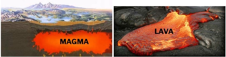 Magma is the molten rock found inside the crust of the earth. Pockets of magma come up from the mantle/main vent and push their way through weak spots and vents in the earth's crust, often under volcanoes. When magma is pushed up through a volcano that's erupting, the magma becomes lava as it exits out of the crater.
