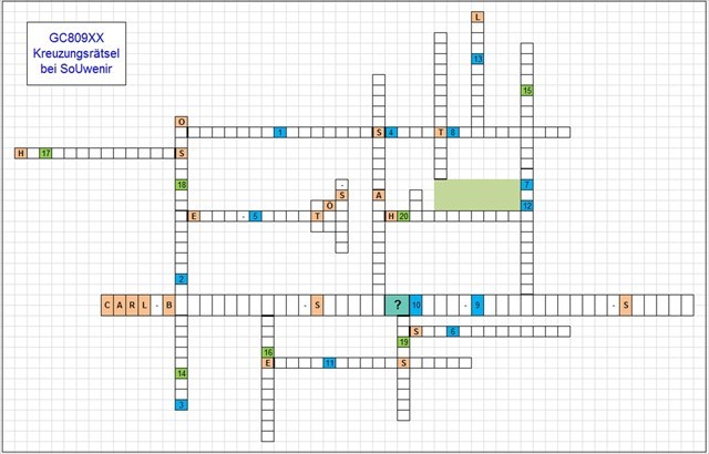 Kreuzungsrätsel Findet mit Hilfe einer Straßenkarte diese Kreuzung () in Gütersloh und die Straßennamen um diese herum. In den Straßennamen sind die Koordinaten für das Final "versteckt". Blaue Zellen [1 bis 13] stehen für die Koordinaten, grüne Zellen [14 bis 20] für den Hint. Leider wurde die „Vor-Ort“-Aufgabe geklaut. Daher findet ihr nun einen PETling vor. Viel Spaß bei der Suche wünscht SoUwenir in Gütersloh.