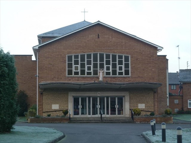 The church was designed by Campling and Iliffe of Sunningdale, Berkshire. It was designed to accommodate 300, with room for fifty more in the gallery. An intended tower was abandoned at the insistence of Cardinal Heenan, who reversed the policy of Cardinal Godfrey of encouraging church towers. Work started in March 1966 and the church was opened by Cardinal Heenan on 4 June 1967 (plaque in entrance porch). The main contractors were Donald Lockhart Ltd of Berkhamsted. The contract cost, including landscaping but excluding professional fees, pews and furnishings, was £66,016. The church was consecrated by Cardinal Hume on 15 September 1968 (plaque in entrance porch).