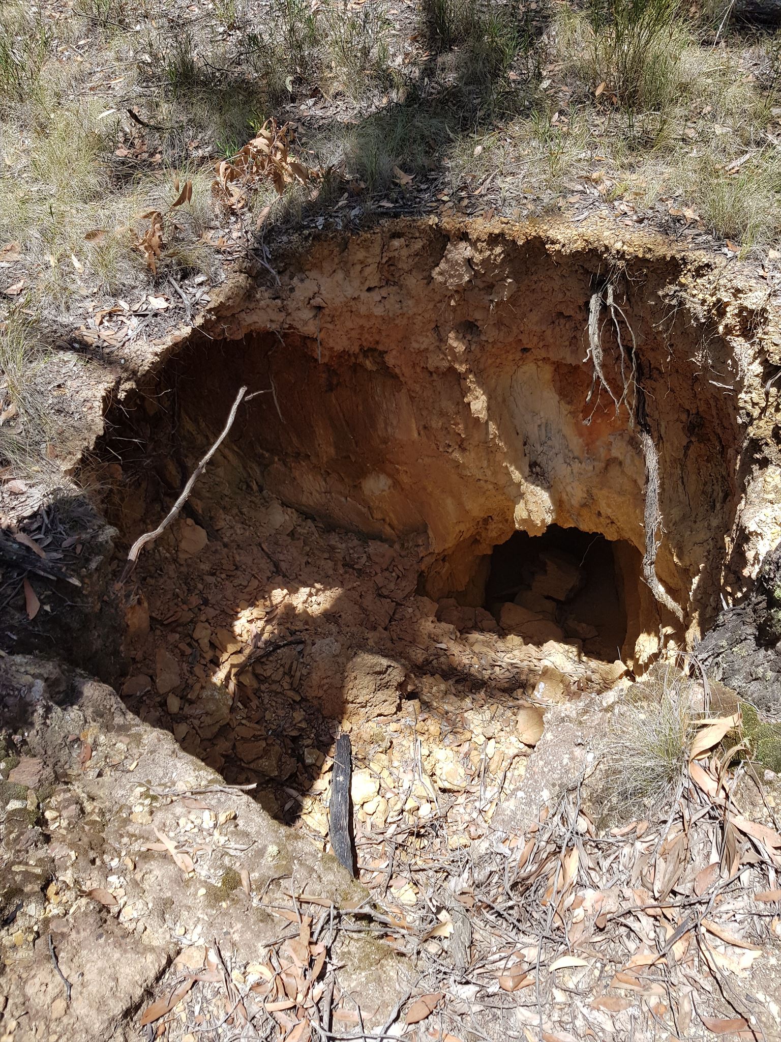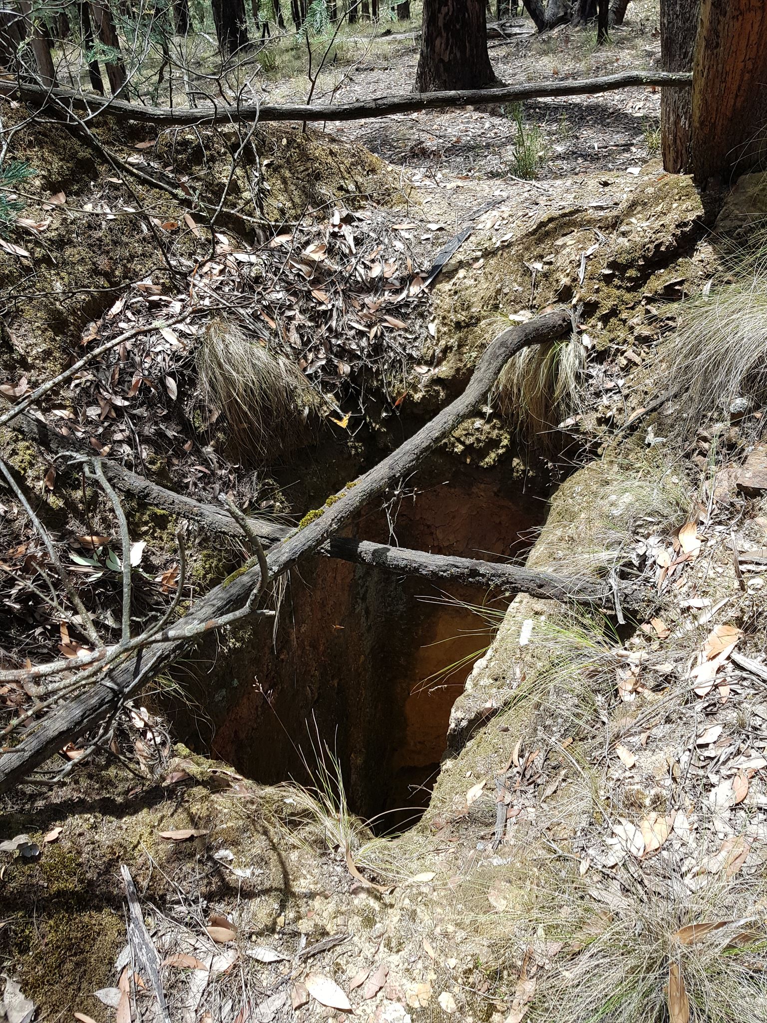 Traditional cache near open mine shafts, water races and old diggings from the gold mining days.