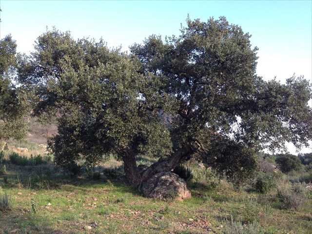 La cache se situe derrière un des jolis chênes-lièges entre deux pierres.