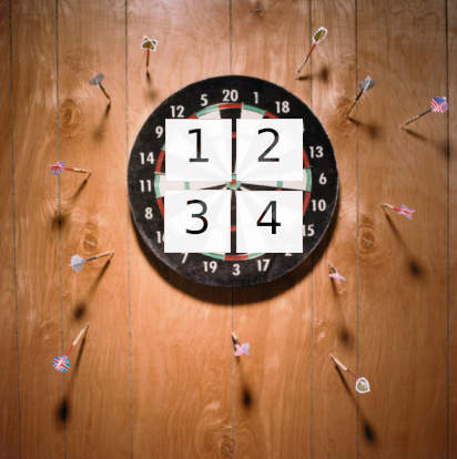 Je lance une première fléchette qui se plante sur la photo en haut à droite. Il me dit alors : là ce n'est ni Mister.D, ni Miss.L.