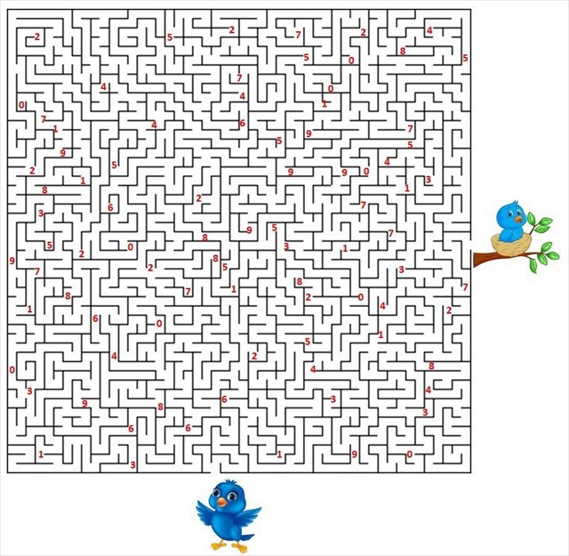 Vogel Blauwvink is op weg naar zijn jong die geduldig in zijn nest zit. Hij kan maar op 1 manier naar het nest. Onderweg komt hij 6 wormen tegen die hij mee neemt voor zijn jong. Plaats de wormen in volgorde van vangst.
