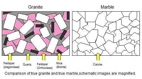 Granite is a common type of felsic intrusive igneous rock with crystal grains (medium to coarse grained) large enough to be visible with the unaided eye. It is a light-colored rock that can be predominantly white, reddish/pink, or gray in color, depending on its mineralogy. It comprises some of the oldest known rocks on Earth, and is the most abundant basement rock underlying the relatively thin sedimentary rock cover of the continents. Granite is produced in volcanic arcs, and more commonly in mountain building resulting from the collision of two continental masses. It forms from the slow crystallization of magma below Earth's surface. Granite is composed mainly of ***quartz and feldspar (*Plagioclase and **Orthoclase) with minor amounts of ****mica, amphiboles, and other minerals.