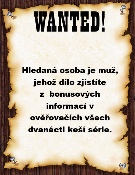 ... někdy před ???? lety... jdu prašnou ulicí kolem SALOONU a vidím, jak šerif Mc Cacher přibíjí na stěnu nový plakát "WANTED". Hrome, koho to zase hledají. Aha, to nebude tak těžké, významná osoba reálná, bájná nebo smyšlená. A jméno, aby nedocházelo k omylům, nám potvrdí známá příbuzná. Jména se prý mají oddělovat nějakým podtržítkem. A teď to hlavní, odměna za veškeré útrapy jsou souřadnice, na kterých se dá najít poklad. To mi stačí, víc nepotřebuju vědět.
