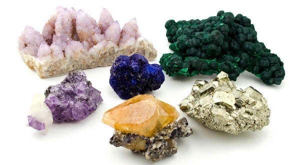 Minerals, naturally occurring elements and chemical compounds having characteristic physical properties such, crystal shape, color, line color, gloss, hardness, cleavage, fracture, density and optical conditions.