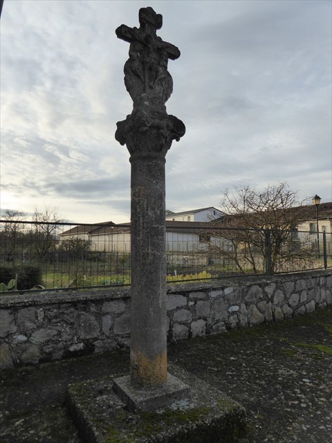 Crucero del siglo XVI y un puente de piedra sobre el río Zadorra.