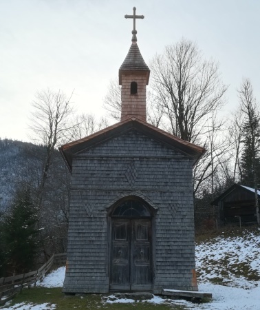 Der Cache befindet sich etwas oberhalb der Hubertuskapelle, am Fuße eines mächtigen Baumes.