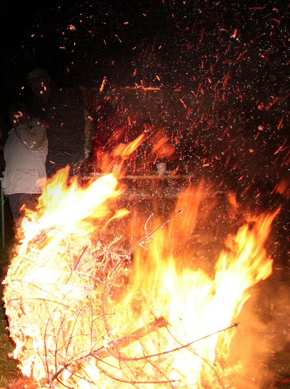 Bringt bitte wie üblich, etwas Brennbares mit, mit dem wir unser Feuer lange und hell am Brennen halten können. Dies kann ein Ast, gerne aber auch der alte Weihnachtsbaum sein, der schon vorher bei uns abgelegt werden kann.