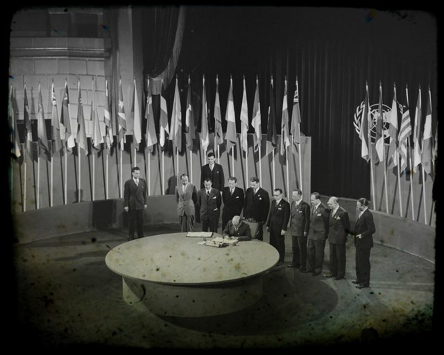 Organizace spojených národů oficiálně vznikla 24. října 1945, kdy byla Charta ratifikována Čínou, Francií, Sovětským svazem, USA, Velkou Británií a většinou ostatních signatářských zemí OSN. Každoročně se proto 24. říjen slaví jako Den Spojených národů.